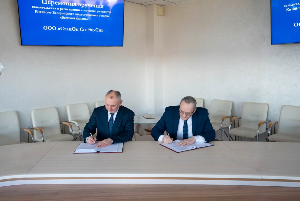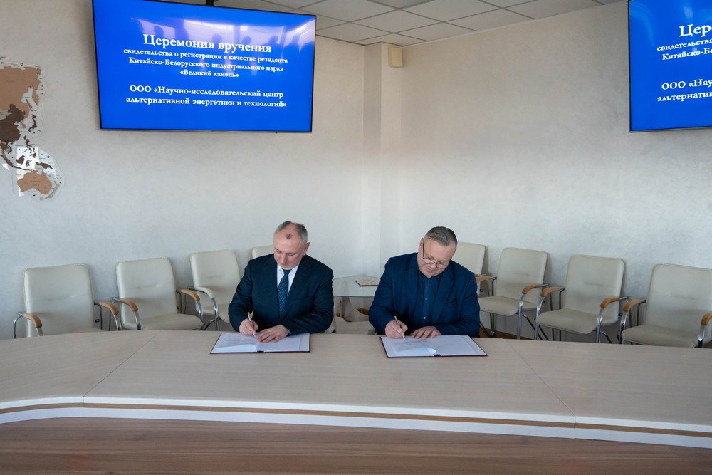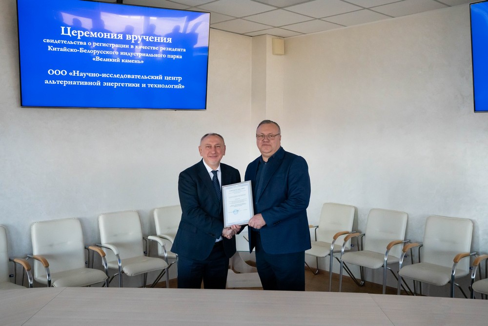 2025 年1月30日, “CNC機(jī)床”有限公司(ООО ?СтанОк Си-Эн-Си?)和“替代能源與技術(shù)科研中心”有限公司(ООО ?Научно-исследовательский центр альтернативной энергетики и технологий?)入駐中白工業(yè)園,成為園區(qū)居民企業(yè)。園區(qū)管委會(huì)主任亞羅申科分別向兩家公司負(fù)責(zé)人頒發(fā)居民企業(yè)證書(shū)。