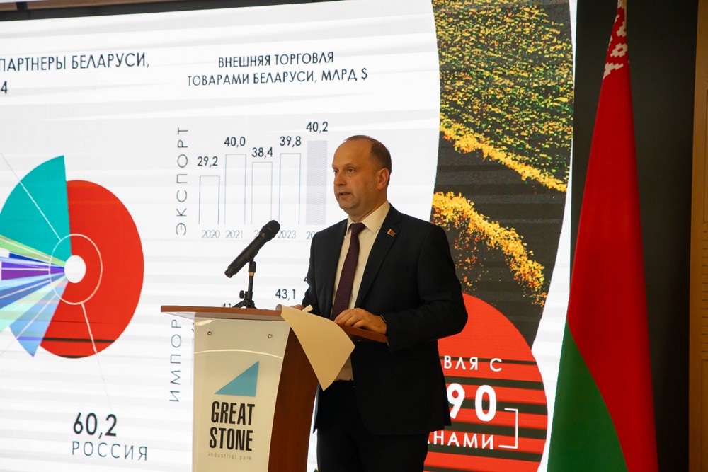 2025 年2月12日,白俄羅斯經(jīng)濟投資與出口潛能研討會在中白工業(yè)園區(qū)舉行。白俄羅斯共和國國民議會眾議院主席謝爾蓋延科、白俄羅斯經(jīng)濟部部長切博塔里、園區(qū)管委會主任亞羅申科、白俄羅斯工商會主席米亞特利科夫、等領(lǐng)導出席本次研討會并致辭,國民議會眾議院130余名議員共同參加本次活動。
