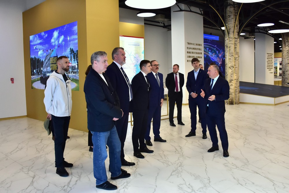 在園區(qū)規(guī)劃館,雅羅申科向卡薩連科介紹了園區(qū)的設(shè)施建設(shè)進(jìn)度、優(yōu)惠政策及居民企業(yè)核心行業(yè)。