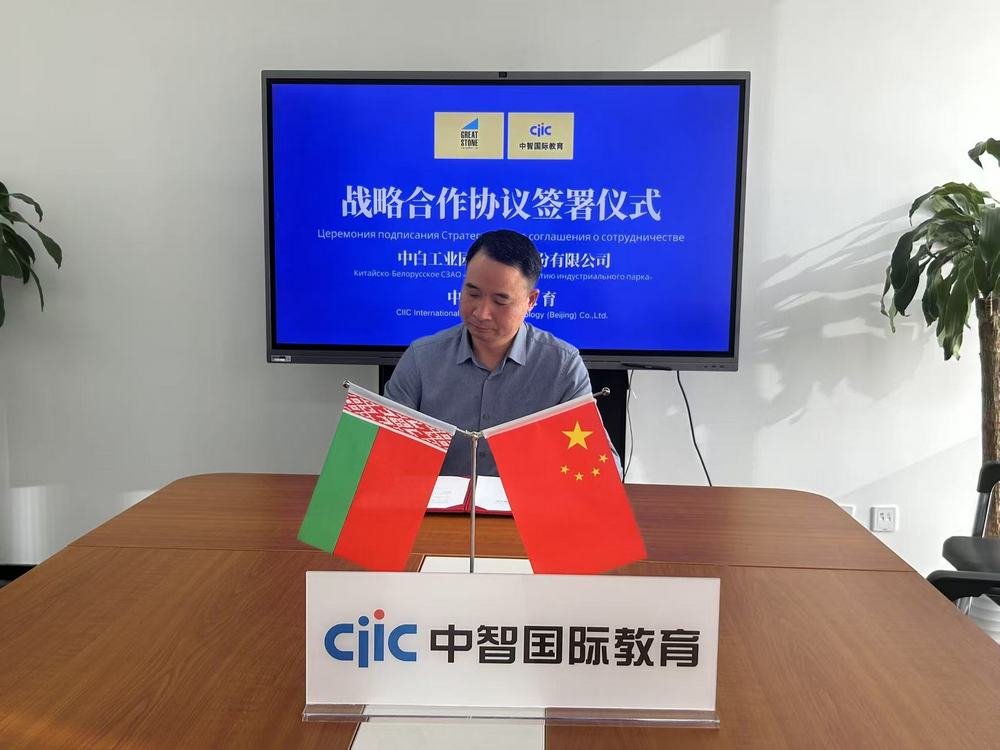 4月7日,中白工業(yè)園戰(zhàn)略合作框架協(xié)議簽約儀式在北京、明斯克兩地線上舉行,中白工業(yè)園區(qū)開發(fā)股份有限公司副總經(jīng)理任飛、央企中智國(guó)際教育科技(北京)有限公司董事長(zhǎng)楊超簽署戰(zhàn)略合作框架協(xié)議。