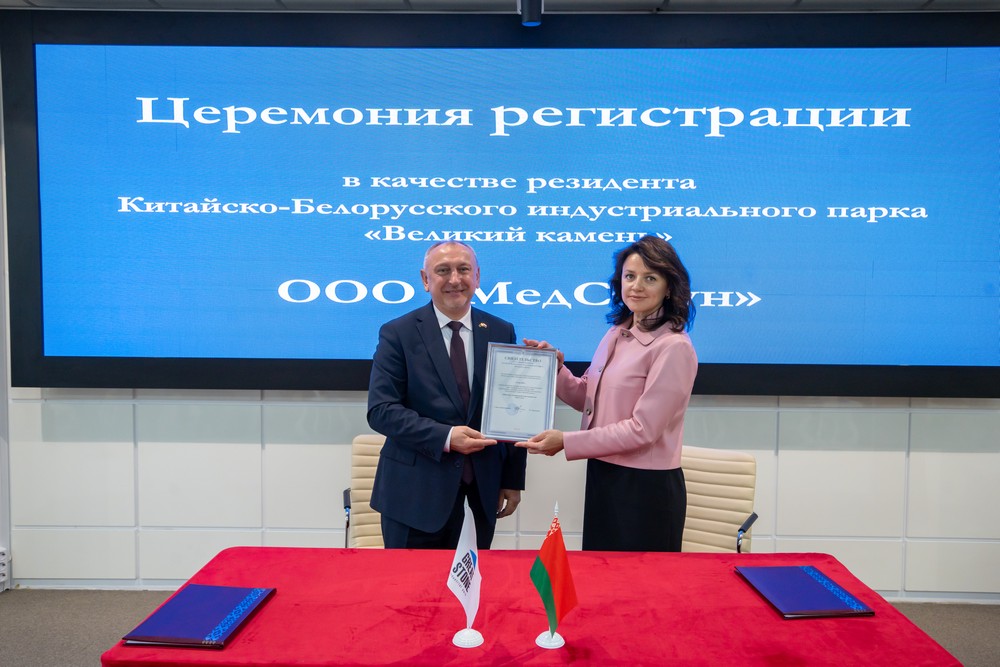 之后,舉辦了MedStone有限責(zé)任公司(白俄羅斯)的入園儀式,雅羅申科向MedStone有限責(zé)任公司總經(jīng)理沃羅日比托娃頒發(fā)了居民企業(yè)證書,該企業(yè)成為園區(qū)第150家居民企業(yè)。