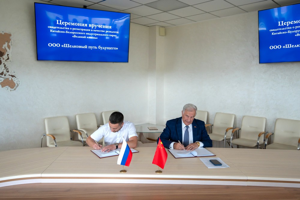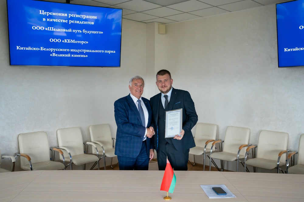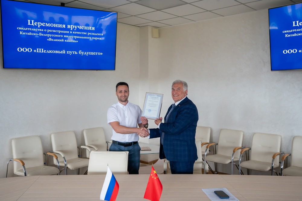 2025年6月30日,中白工業(yè)園迎來兩家新的居民企業(yè)——中俄合資“未來絲綢之路”有限責(zé)任公司和白俄羅斯“KBMotors”有限責(zé)任公司。園區(qū)管委會(huì)副主任塔巴紐霍夫向企業(yè)代表頒發(fā)了居民企業(yè)證書。