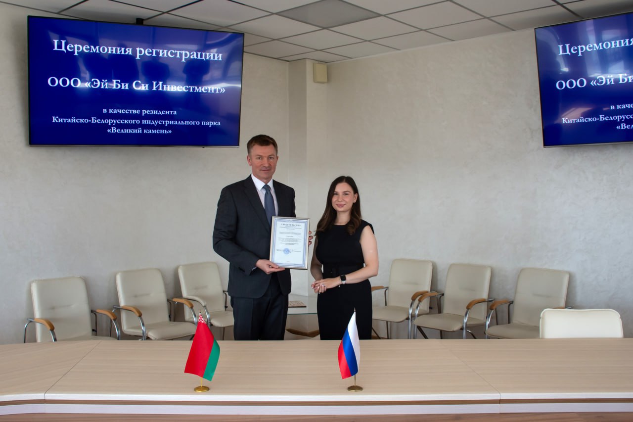 2025年8月21日,中白工業(yè)園迎來(lái)了一家新的居民企業(yè)——俄資背景的“ABC投資”有限責(zé)任公司。中白工業(yè)園管委會(huì)第一副主任列別江采夫向該公司副總經(jīng)理索羅金娜頒發(fā)了居民企業(yè)證書。