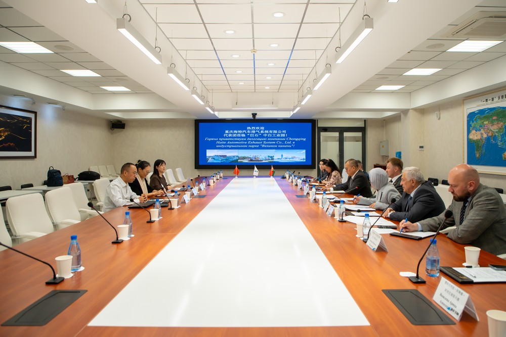 2025年8月26日,重慶海特汽車排氣系統(tǒng)有限公司董事長秦瑞平率代表團一行訪問中白工業(yè)園。園區(qū)管委會第一副主任列別江采夫、副主任塔巴紐霍夫,開發(fā)公司總經(jīng)理蔡志勇、第一副總經(jīng)理卡羅杰耶夫等參加接訪活動。