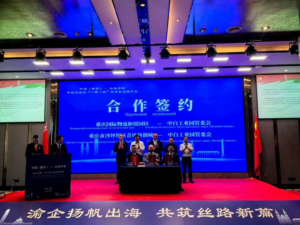 推介會期間,園區(qū)代表系統(tǒng)介紹了工業(yè)園的特惠政策、基礎(chǔ)設(shè)施建設(shè)和生產(chǎn)物流地產(chǎn)等領(lǐng)域的投資機(jī)遇。隨后,中白工業(yè)園管委會與重慶國際物流樞紐園區(qū)、重慶市沙坪壩區(qū)青鳳科創(chuàng)城分別簽署了合作協(xié)議。管委會招商引資局副局長季瓦科夫代表白方簽署相關(guān)文件。