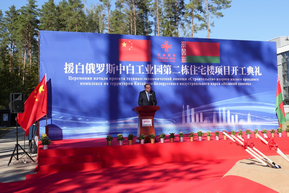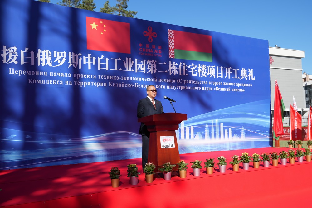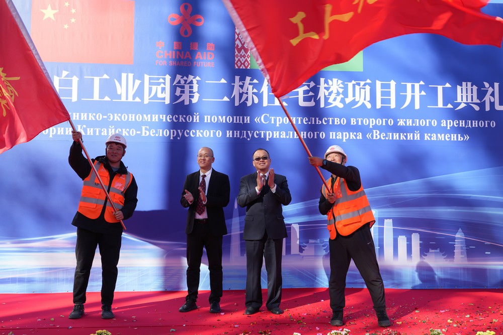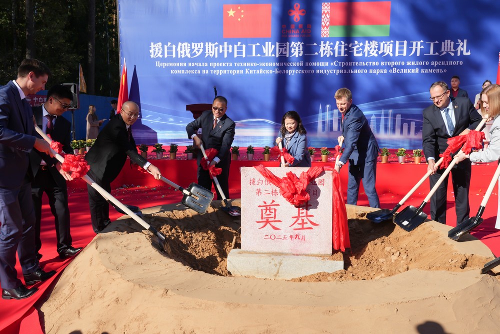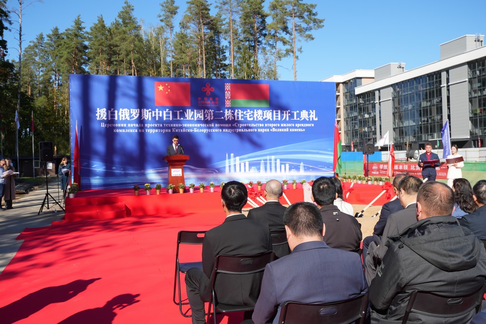 2025年9月26日,中白工業(yè)園隆重舉行第二棟住宅樓項(xiàng)目開工儀式。中國駐白俄羅斯使館經(jīng)商參贊王蕊娟、白俄羅斯經(jīng)濟(jì)部經(jīng)濟(jì)一體化局局長別里奇克、中白工業(yè)園管委會第一副主任列別江采夫、副主任塔巴紐霍夫、開發(fā)公司總經(jīng)理蔡志勇、副總經(jīng)理杰特科夫等雙方代表共同出席活動。