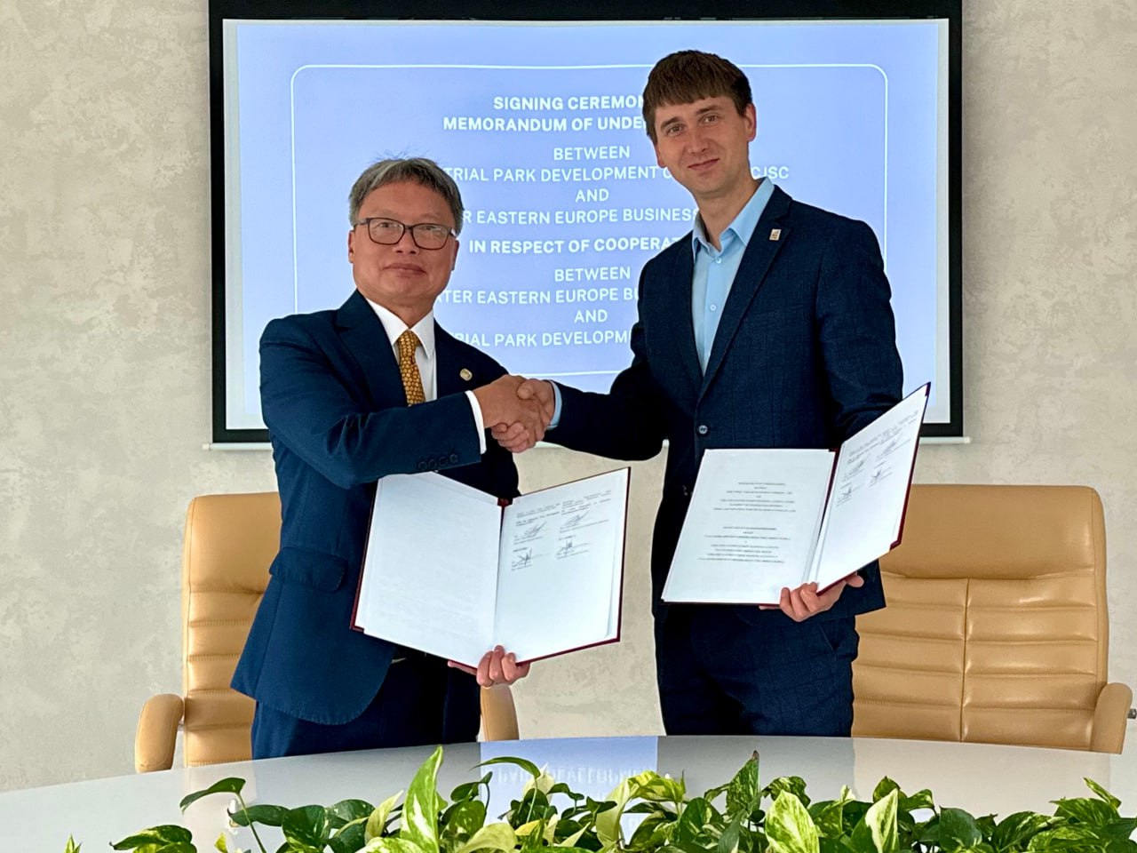 2025年10月2日,中白工業(yè)園開(kāi)發(fā)公司與香港大東歐業(yè)務(wù)發(fā)展聯(lián)盟(GEEBA)在中白工業(yè)園舉行會(huì)談并簽署合作備忘錄。開(kāi)發(fā)公司副總經(jīng)理杰特科夫與聯(lián)盟首席召集人嚴(yán)皓展代表雙方在備忘錄上簽字。