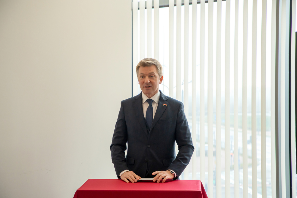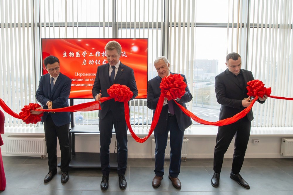 劉影濤在致辭中表示,本次技術(shù)交流將有效提升白俄羅斯工程師的專業(yè)技能,增進(jìn)兩國技術(shù)人員的相互理解,增強(qiáng)中白醫(yī)療領(lǐng)域合作的互信基礎(chǔ)。列別江采夫強(qiáng)調(diào)了園區(qū)對(duì)醫(yī)療健康產(chǎn)業(yè)的高度重視,指出園區(qū)與國藥國際合作潛力巨大,期待全面釋放這一潛力。隨后,劉影濤、列別江采夫、塔巴紐霍夫及白俄羅斯共和國醫(yī)療技術(shù)、信息化、醫(yī)療管理和經(jīng)濟(jì)科學(xué)實(shí)踐中心預(yù)算外發(fā)展與采購處處長戈盧什科共同為儀式剪彩。