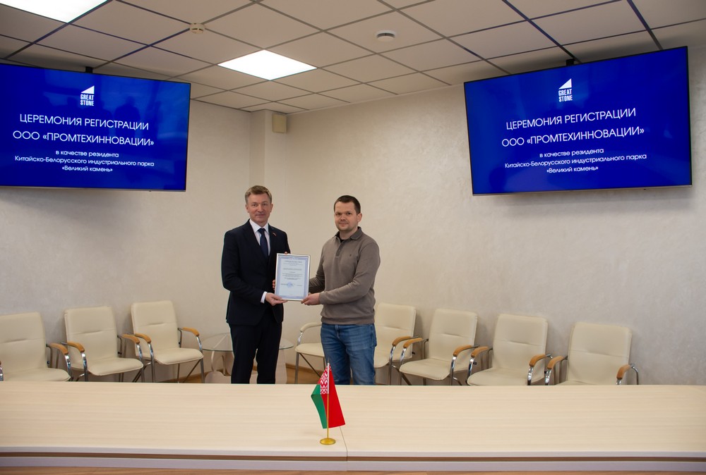 2025年12月23日,白俄羅斯資本企業(yè)工業(yè)技術(shù)創(chuàng)新有限責任公司正式注冊成為中白工業(yè)園居民企業(yè)。園區(qū)管委會第一副主任列別江采夫向公司總經(jīng)理多爾貝什頒發(fā)了居民企業(yè)證書。