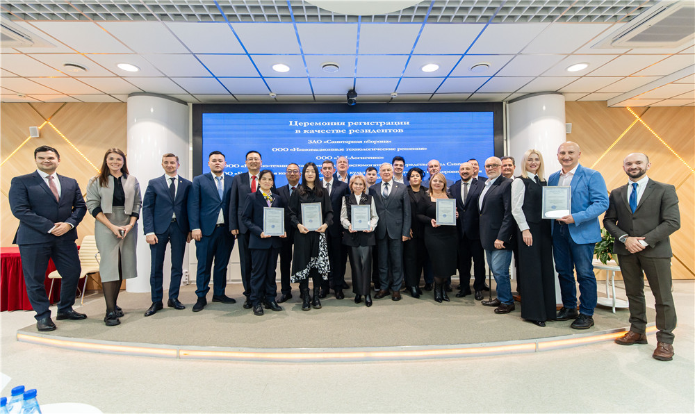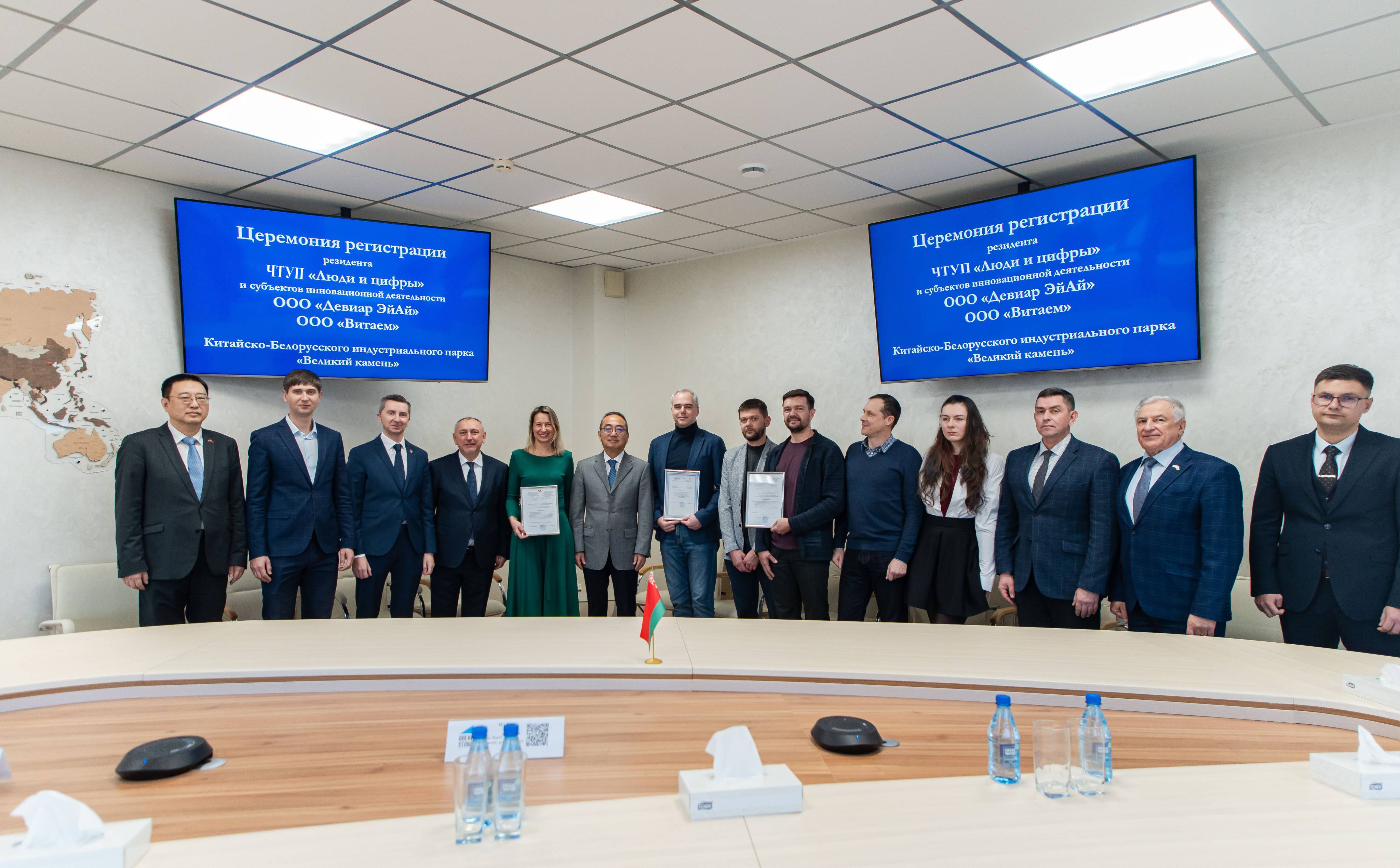 2024 年11 月21 日,居民企業(yè)ЧТУП ?Люди и цифры?和創(chuàng)新活動主體ООО ?Девиар ЭйАй?、ООО ?Витаем?入駐中白工業(yè)園,園區(qū)管委會主任亞羅申科分別向三家公司負責人頒發(fā)...202411-21