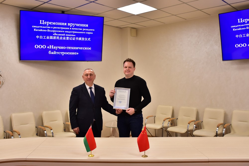 12月28日,字建科技有限責(zé)任公司入園儀式在中白工業(yè)園舉行,園區(qū)管委會主任亞羅申科向該企業(yè)總經(jīng)理加拉修克頒發(fā)了入園證書,園區(qū)開發(fā)公司總經(jīng)理李鐘漢、副總經(jīng)理任飛...202312-28