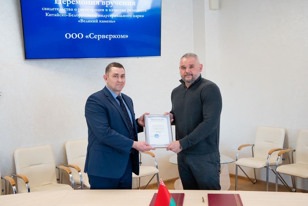 1月17日,服務(wù)器通訊有限責(zé)任公司成為中白工業(yè)園居民企業(yè),管委會第一副主任亞季莫夫與該公司總經(jīng)理聶奇米烈夫簽署入園協(xié)議,并頒發(fā)了入園證書,副主任塔巴紐霍夫、副...202401-17