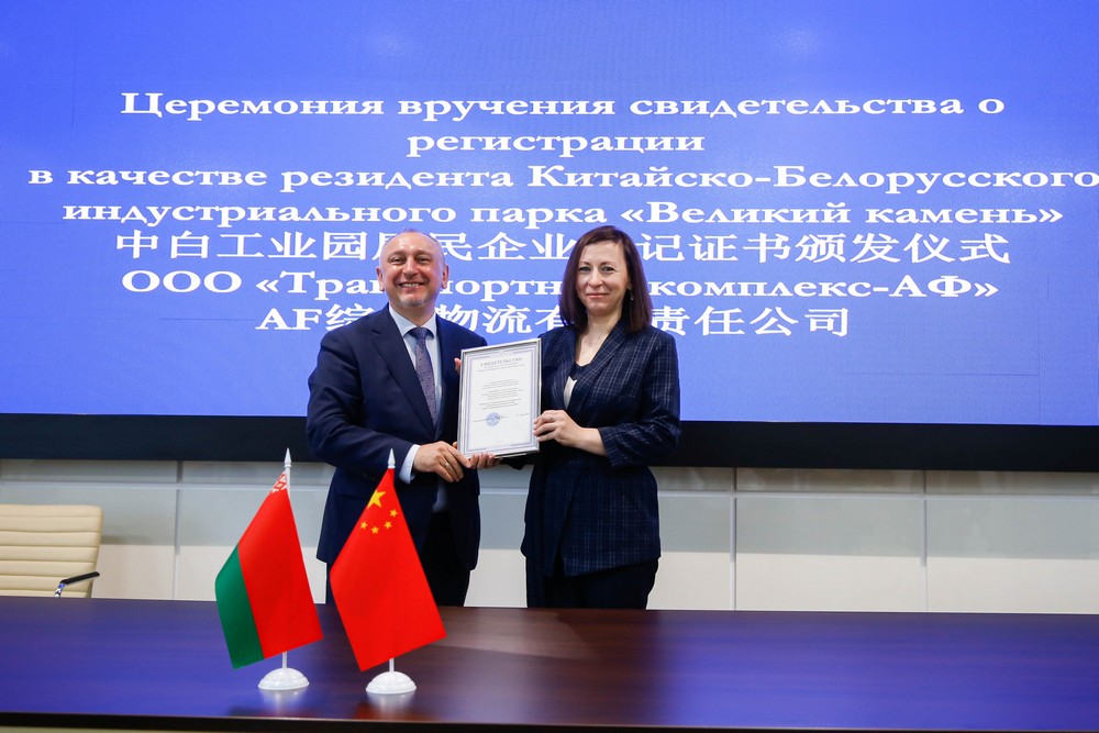 5月11日,AF綜合物流公司注冊成為中白工業(yè)園第90家居民企業(yè),園區(qū)管委會(huì)主任亞羅申科向AF綜合物流有限責(zé)任公司總會(huì)計(jì)索巴列夫斯卡婭·奧爾加頒發(fā)入園證書,開發(fā)公司總...202205-11