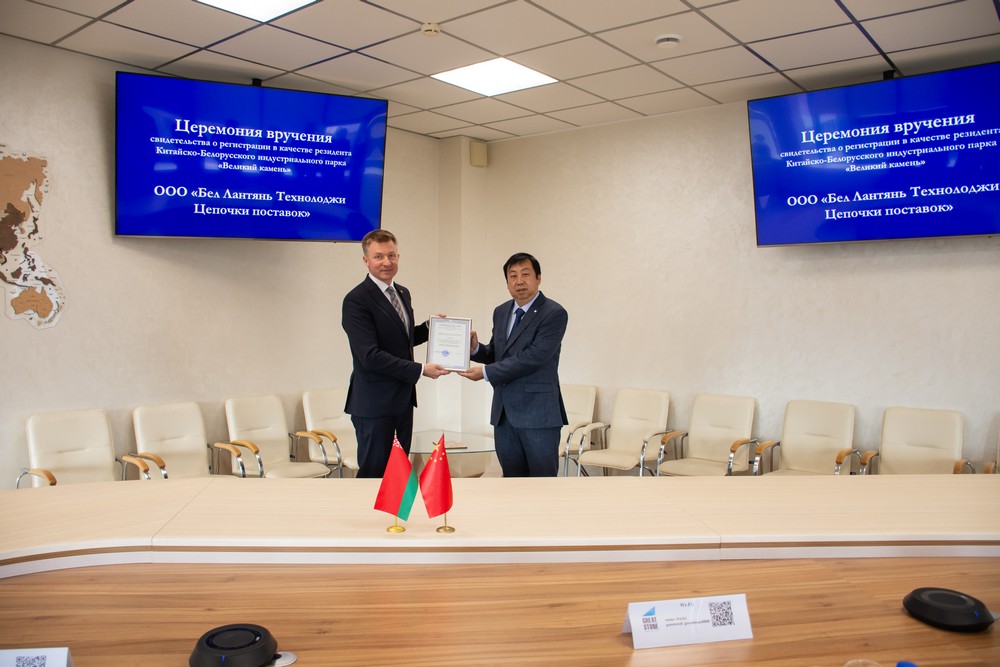 2025年10月14日,中白工業(yè)園迎來新居民企業(yè)——白俄藍天科技供應(yīng)鏈有限責任公司(中國企業(yè)投資)。入園儀式上,園區(qū)管委會第一副主任列別江采夫向企業(yè)總經(jīng)理曾濤正式頒發(fā)...202510-14