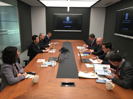2020年10月21日下午,中白工業(yè)園區(qū)開發(fā)股份有限公司總經(jīng)理嚴剛一行在北京拜會了亞洲基礎(chǔ)設(shè)施投資銀行副行長康斯坦丁●利米妥夫斯基??邓固苟「毙虚L歡迎嚴剛一行到訪...202010-21