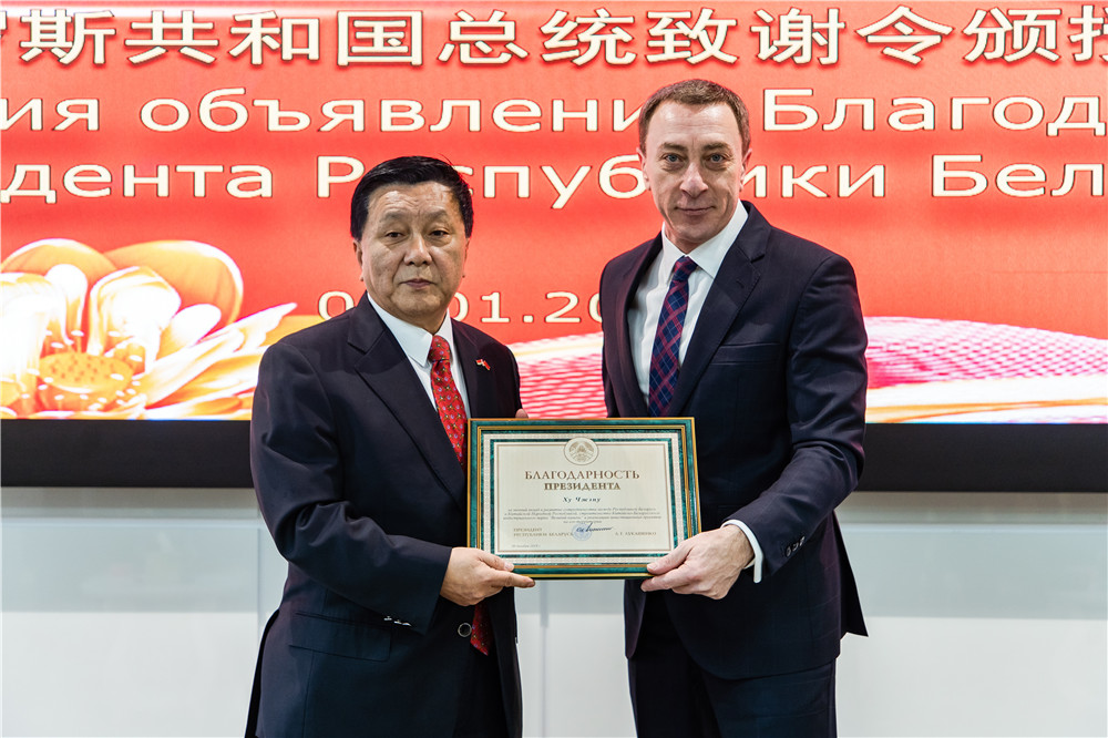 2020年1月3日上午,白俄羅斯總統(tǒng)盧卡申科給胡政的致謝令頒授儀式在中白工業(yè)園隆重舉行。白俄羅斯總統(tǒng)辦公廳副主任、中白政府間合作委員會(huì)白方主席斯諾普科夫親臨中白...202001-03