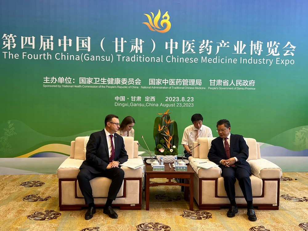 8月23日,在參觀第四屆中國(甘肅)中醫(yī)藥產(chǎn)業(yè)博覽會(huì)期間,白俄羅斯共和國衛(wèi)生部部長皮涅維奇會(huì)見甘肅省省長任振鶴,雙方就在中醫(yī)藥種植、醫(yī)藥產(chǎn)業(yè)合作等內(nèi)容深入交換了...202308-23