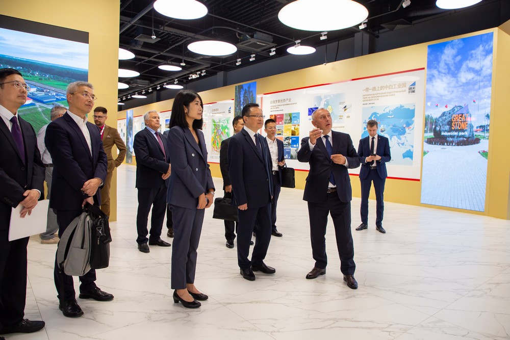 2023年7月26日,白俄羅斯駐外大使團(tuán)組考察中白工業(yè)園,園區(qū)管委會(huì)主任亞羅申科、開(kāi)發(fā)公司第一副總經(jīng)理卡羅捷耶夫等陪同考察。在園區(qū)規(guī)劃館,亞羅申科向來(lái)賓介紹了園區(qū)...202307-26