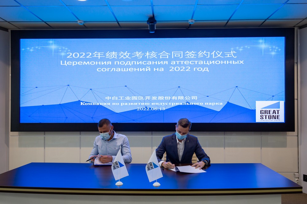 6月13日,中白工業(yè)園區(qū)開發(fā)公司舉行全資子公司績效考核合同簽約儀式,開發(fā)公司總經(jīng)理李鐘漢出席儀式并致辭,公司第一副總經(jīng)理卡羅杰夫分別與水務(wù)公司總經(jīng)理休爾科和...202206-13