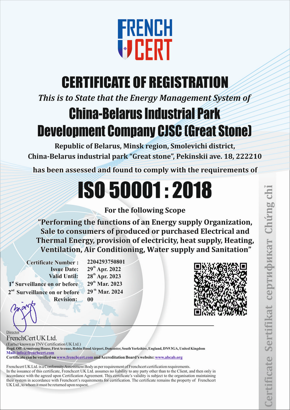 近期,中白工業(yè)園區(qū)開發(fā)公司順利通過國際能源管理體系認(rèn)證,并獲得ISO 50001:2018國際證書。開發(fā)公司是園區(qū)的主要電力能源供應(yīng)單位,通過嚴(yán)格執(zhí)行國際標(biāo)準(zhǔn)ISO 50001:...202206-02
